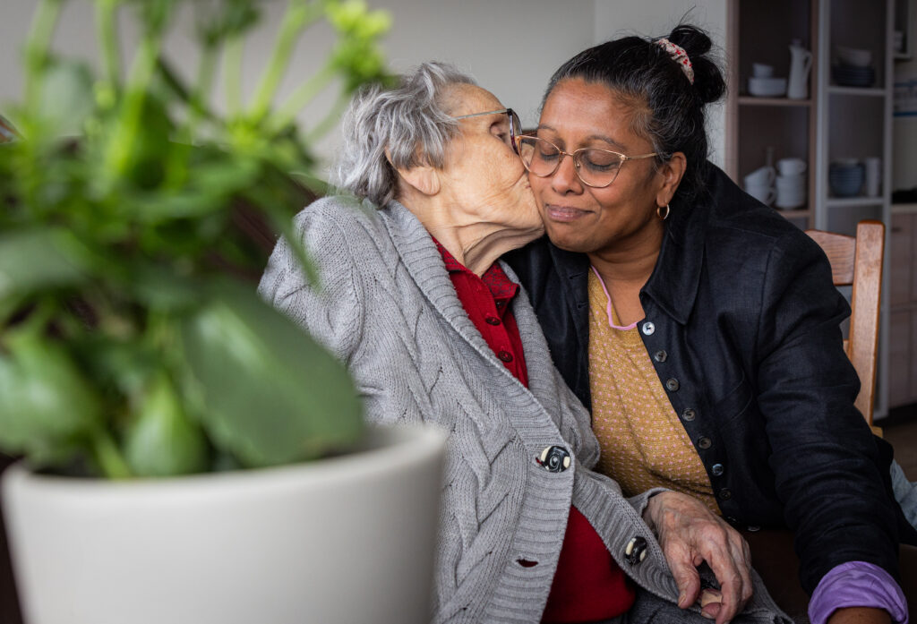 ‘Een gevoel van thuiskomen’. Zo omschrijven veel bewoners en collega’s de sfeer van Eemwijk. Dat komt door hoe we de zorg georganiseerd hebben: in kleine woongroepen. Ook voor mensen met een somatische zorgvraag, en dat is behoorlijk uniek in Nederland. Maar het komt ook door de collega’s. Een gezellige mix tussen jong en oud, met en zonder zorgervaring. We delen spaarzegels, vakantieverhalen én leermomenten. Want soms zit het even tegen en ook dan hebben we oog voor elkaar. Zo kom je iedere dag weer met goede zin naar je werk.