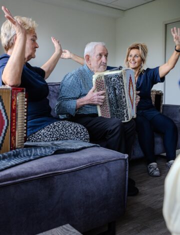 Muziek verbindt. Daar weten we bij Eemwijk alles van. Iedere donderdagochtend is er een muzikaal optreden in ons grand café. Er wordt geklapt en enthousiast meegezongen. Het publiek? De bewoners met dementie of een somatische zorgvraag van onze kleinschalige woongroepen. Bij Eemwijk hebben zij veel beweegruimte en maken ze volop gebruik van onze faciliteiten. Dat alles binnen een vertrouwde omgeving. Want een band tussen bewoners en collega’s is hier zéker aanwezig.