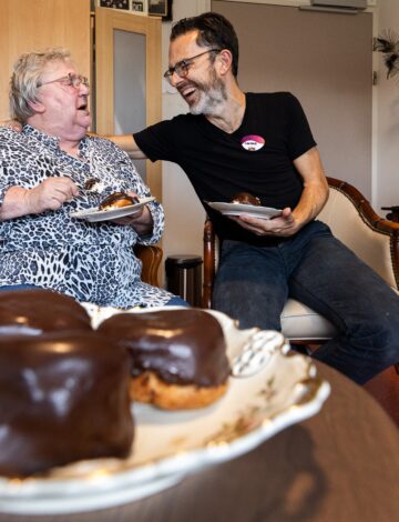 Extra bijzonder is dat we het gebouw delen met de dagbesteding van Cello. Zij bieden zorg aan mensen met een verstandelijke beperking. We werken regelmatig samen. Zo wordt onze post en brood bezorgd door de mensen van de dagbesteding van Cello. En andersom leest één van onze bewoners iedere week een verhaal voor aan de cliënten van Cello. Voor onze bewoonster misschien wel het hoogtepunt van haar week.