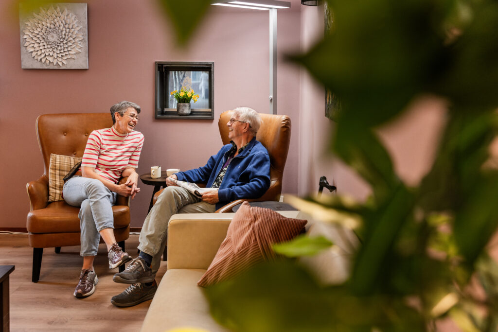 Collega’s met én zonder zorgdiploma werken samen volgens de Sociale Benadering. Dat is een moderne visie op ouderenzorg waarbij we ons concentreren op de mens, in plaats van de beperking. Samen met vrijwilligers, familie en naasten geven we iedere bewoner wat hij of zij nodig heeft. Bewoners houden hun gevoel van eigenwaarde juist doordat we oog hebben voor wat zij willen en (nog) kunnen. Dat maakt onze ouderenzorg warm en menselijk.
