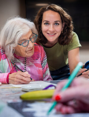 Collega’s met én zonder zorgdiploma werken samen volgens de Sociale Benadering. Dat is een moderne visie op ouderenzorg waarbij we ons concentreren op de mens, in plaats van de beperking. Samen met vrijwilligers, familie en naasten geven we iedere bewoner wat hij of zij nodig heeft. Bewoners houden hun gevoel van eigenwaarde juist doordat we oog hebben voor wat zij willen en (nog) kunnen. Dat maakt onze ouderenzorg warm en menselijk.