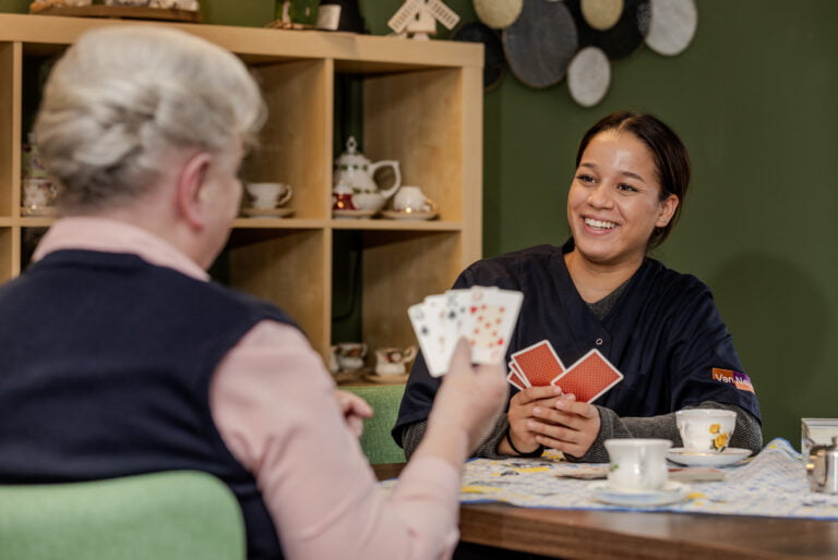 Onze zorgaanpak kun je vernieuwend noemen. We werken op meerdere locaties met de Sociale Benadering. Dat betekent dat we de mens centraal stellen, niet de patiënt. Ouder worden komt nu eenmaal met gebreken, maar er kan nog heel veel wél. Door hierop te focussen kunnen ouderen zoveel mogelijk van hun vertrouwde leven behouden. Ook wanneer ze binnen één van onze locaties komen wonen.